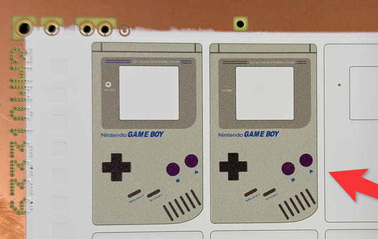 I don’t recall checking a box about getting a printing proof, but I got an email anyway asking about the printing. The printing on the left is the first attempt. It looks good (this image is scaled about 4x) but there is a gap around the “battery” indicator that I didn’t like. I assumed that there was a limitation in the printing process that was causing that. The indicator is meant to pass-through light from an LED on the other side. There’s no copper, soldermask or silkscreen between it and the LED – just the fiberglass substrate.